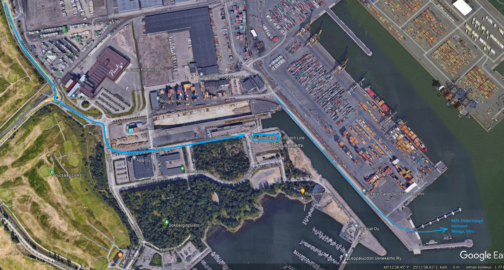 jonka lähtösatama on Helsingin Vuosaaressa [L].Vuosaaren