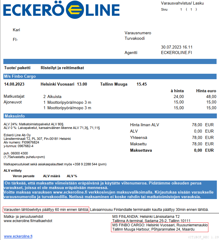 vasemmanpuoleisen linkin alareunasta. Laivaliput varattiin ja